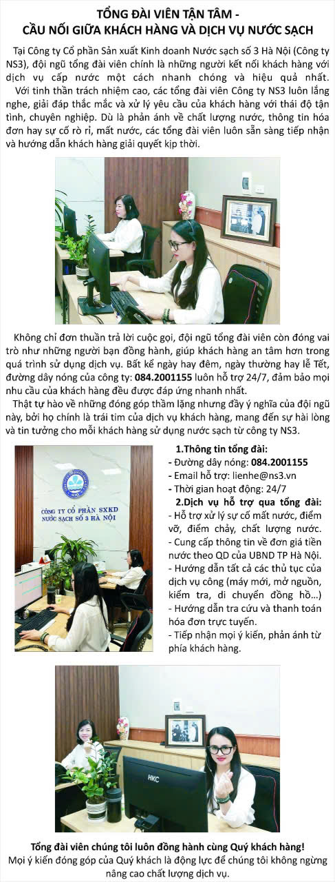 - Tổng đài viên tận tâm - Cầu nối giữa khách hàng và dịch vụ nước sạch
